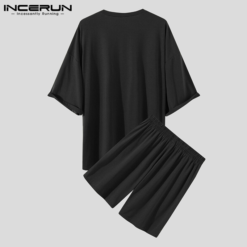 RisingHope Korea INCERUN 2PCS Mens Short Sleeve T Shirts Short Sleerwear Sets Sports Tracksuit Lounge Suit